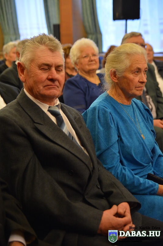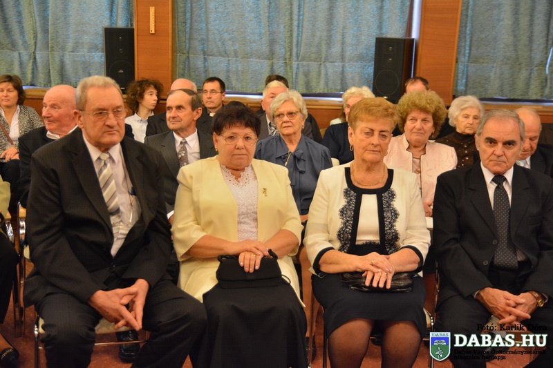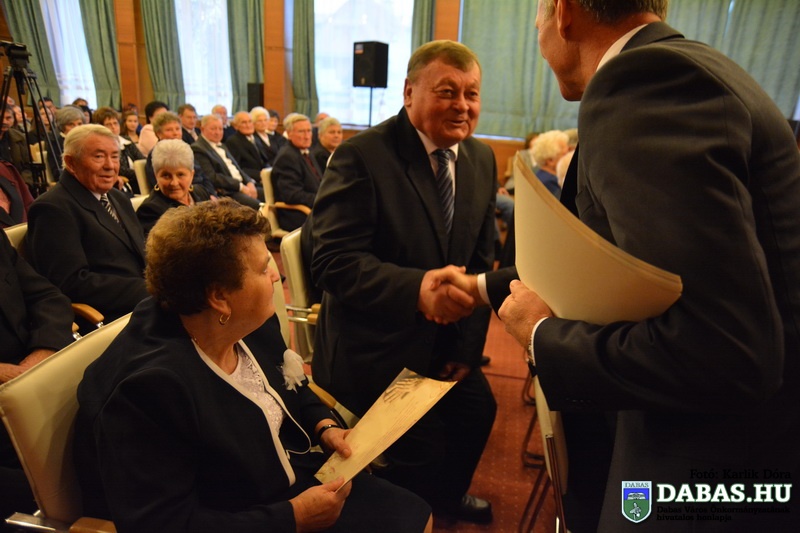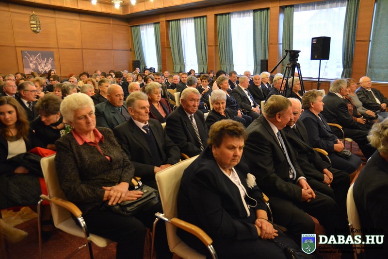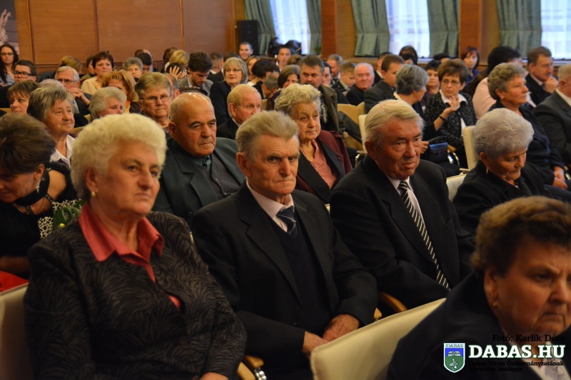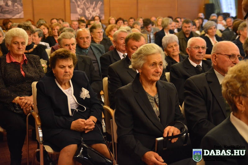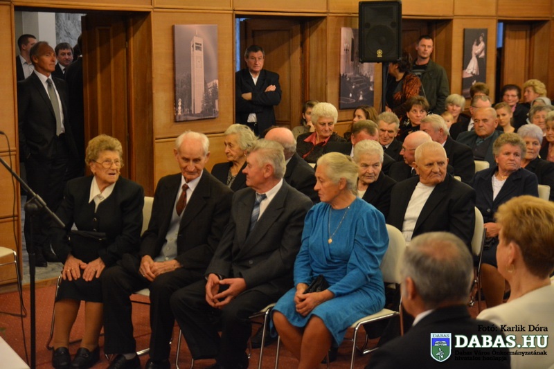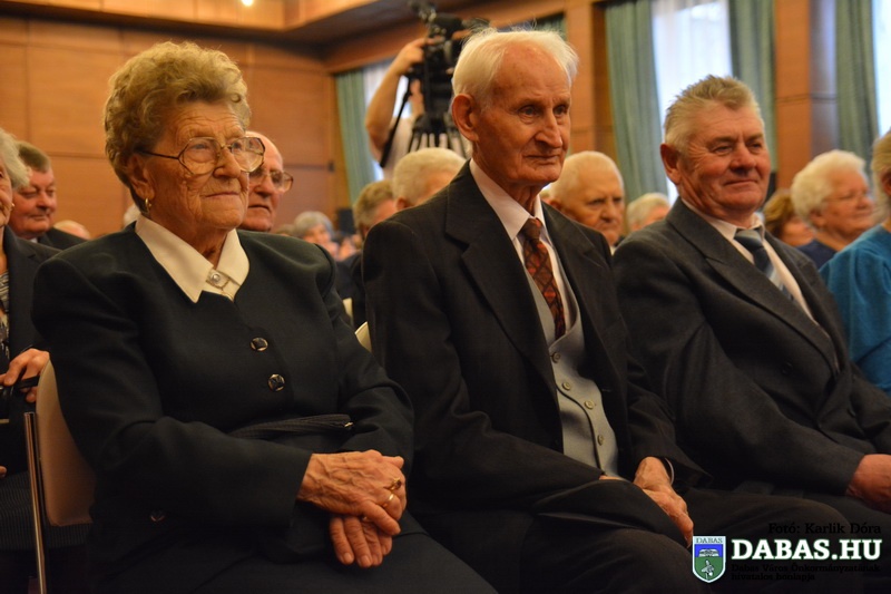 Dabas Város Önkormányzata november 22-én köszöntötte az 50-60 éves házassági évfordulósokat, sőt idén először az 55-56-70 éves jubiláló párok is csatlakoztak az ünnepeltekhez. Az idősek aláírásukkal erősítették meg házassági esküjüket a város anyakönyvvezetője előtt, majd Kőszegi Zoltán polgármester köszöntötte őket és átadta az önkormányzat ajándékait.