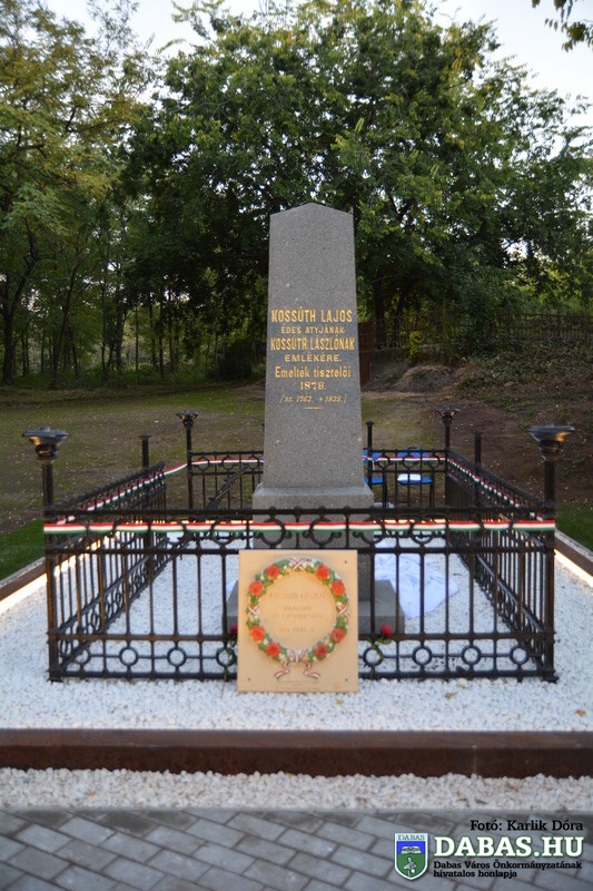 2014. október 10-én, pénteken 17.00 órakor került sor a Református öregtemető – Kegyeleti parkban (Dabas, Zlinszky u. 1.) Kossuth Lajos édesapja, Kossuth László síremlékének avatóünnepségére.