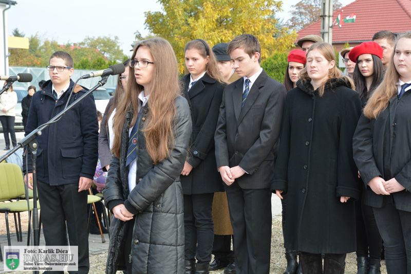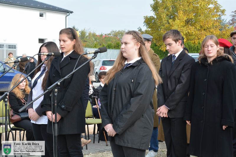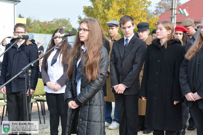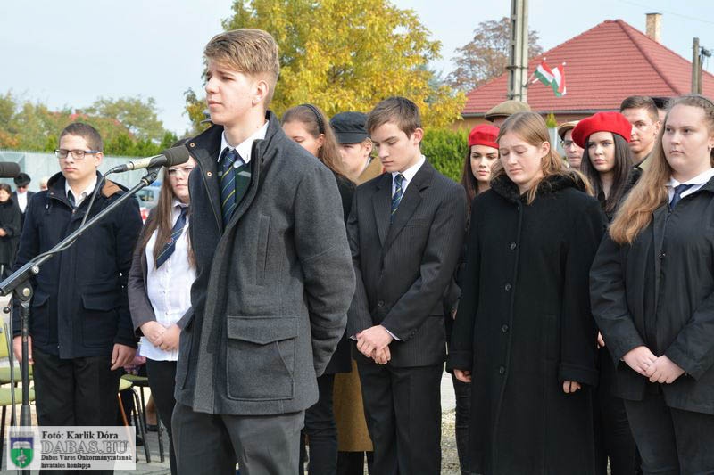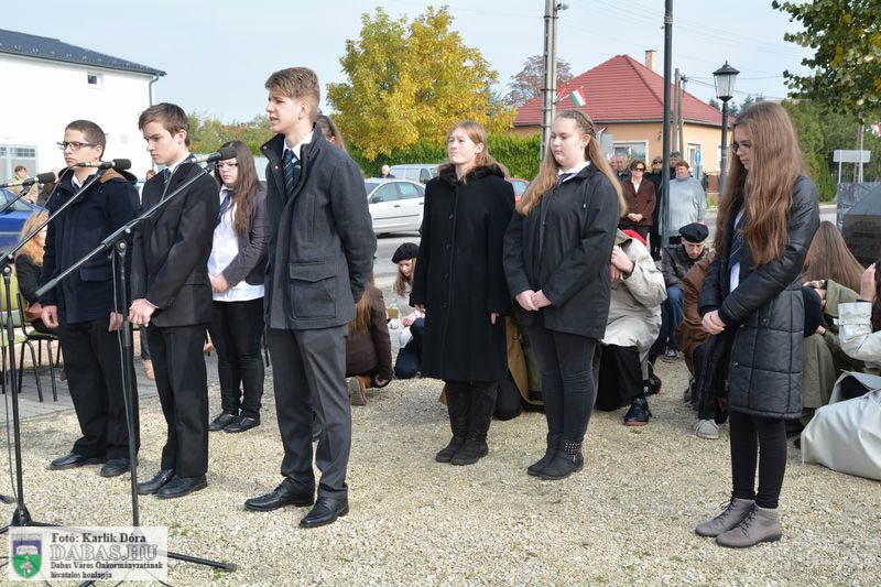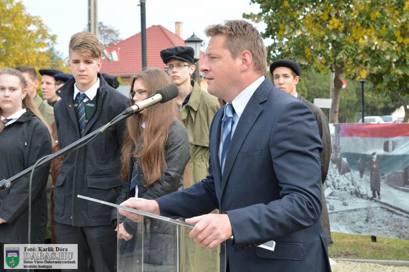 Dabas Város Önkormányzata október 23-án emlékezett az 1956-os forradalom és szabadságharc eseményeire a gyóni városrészközpontban, az 56-osok obeliszkjénél.
