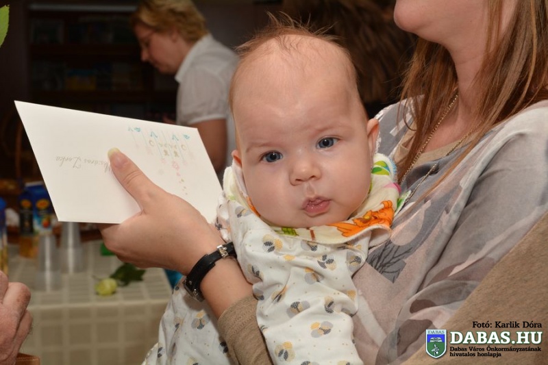Dabas Város Önkormányzata november 7-én rendezte meg az újszülöttek köszöntését a Szent István úti Új Bóbita Óvodában. Ez alkalommal a 2015. első félévében született csecsemőket és szüleiket köszöntötték ajándékok, virágok átadásával és egy kis vendéglátással, délután pedig faültetésre került sor a sári Csati-parton, az Újszülöttek Ligetében.