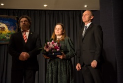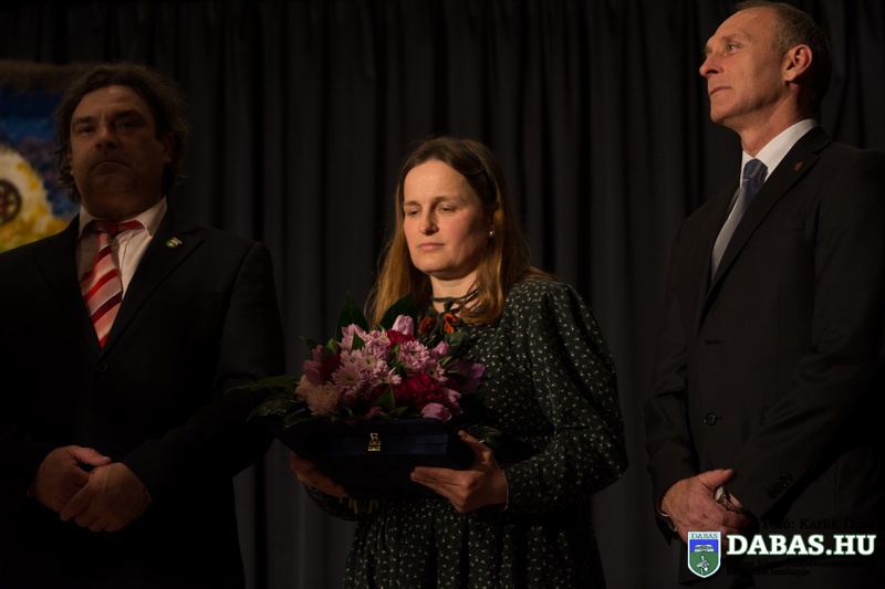 A rendezvény folytatásában Kőszegi Zoltán polgármester és Révész Károly, az Emberi Erőforrások Bizottság elnöke átadta a Dabas Kultúrájáért Karacsné Takács Éva-díjat, amelyben idén Solymosi Borbála népművész, nemezkészítő és népiének tanár részesült.