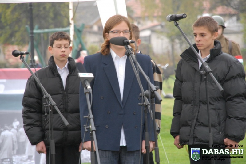 A jelenlévő ünneplő közösséget, a város kitüntetett polgárait és díszpolgárait Kőszegi Zoltán polgármester köszöntötte, majd a Gyóni Géza Általános Iskola nyolcadikosainak ünnepi műsora idézte fel az 56-os eseményeket.