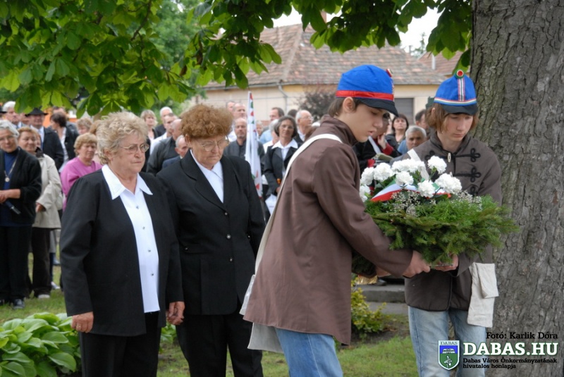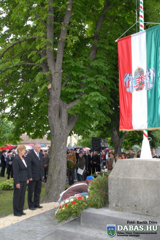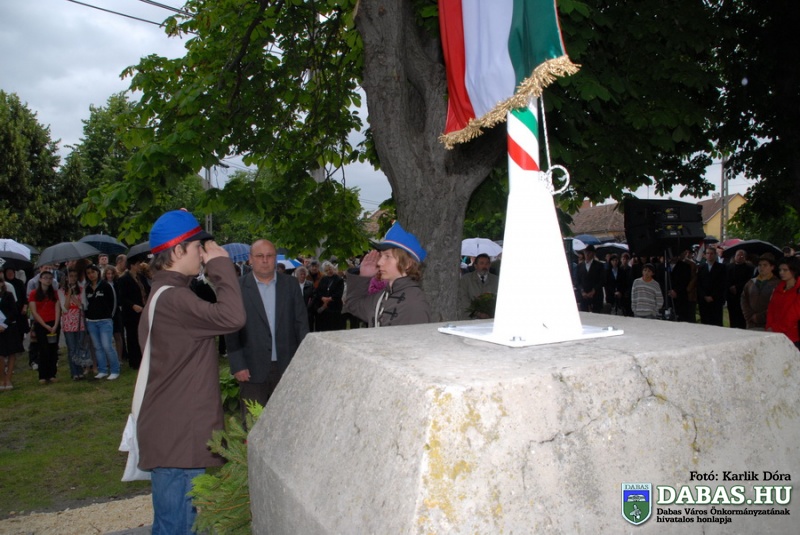 A TRIANONI DÖNTÉS 90. évfordulója alkalmából megrendezett rendezvénysorozat részeként 2010. június 4-én, pénteken 16.40 órakor került sor Dabas-Sári településrészen az Országzászló-avató ünnepségre. Az ünnepi rendezvényen Szandhofer János alpolgármester mondott köszöntő beszédet, majd dr. Zlinszky János, Dabas város díszpolgára mondta el ünnepi szónoklatát. Ezt követően került sor az országzászló felvonására, amit a történelmi egyházak képviselői szenteltek meg. A rendezvény zárásaként pedig a városi intézmények képviselői, illetve az ünnepi megemlékezés vendégei helyezték el koszorúikat a zászló talapzatánán.