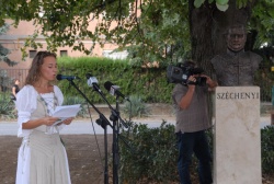 Gróf Széchenyi István mellszobrának avatóünnepsége a Szent István téren. A szobor Gábor Emese szobrászművész alkotása.