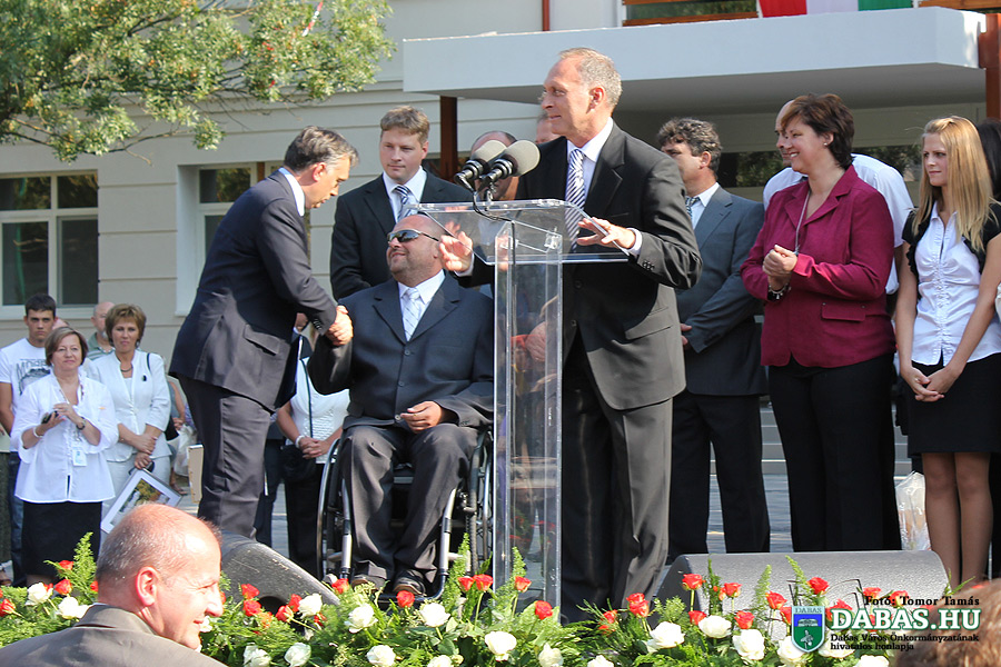 Az épületek bejárása után került sor az avatóünnepségre a Szent István téren felállított színpadon. A vendégeket és az egybegyűlteket Kőszegi Zoltán polgármester, országgyűlési képviselő köszöntötte, majd átadta a szót Magyarország miniszterelnökének, aki a városban történt nagyszabású fejlesztéseket méltatta. Orbán Viktor beszédének második részében az ország helyzetéről, az előttünk álló megpróbáltatásokkal teli őszről, a bankhitelesek sorsáról szólt, majd kérte a lakosság megértését és türelmét, valamint együttműködő magatartását a válságból való kilábaláshoz.