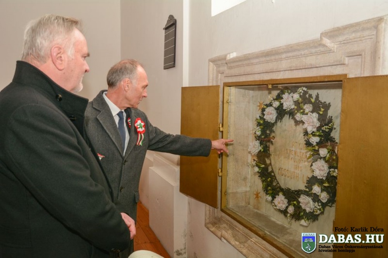 A rendezvény koszorúzással zárult, közel harminc intézmény, civilszervezet, egyesület kísérte a közös koszorút az épp 50 éve felavatott Kossuth-szobor talapzatához a Dabasi Kovács Sámuel Tüzércsapat felvezetésével.