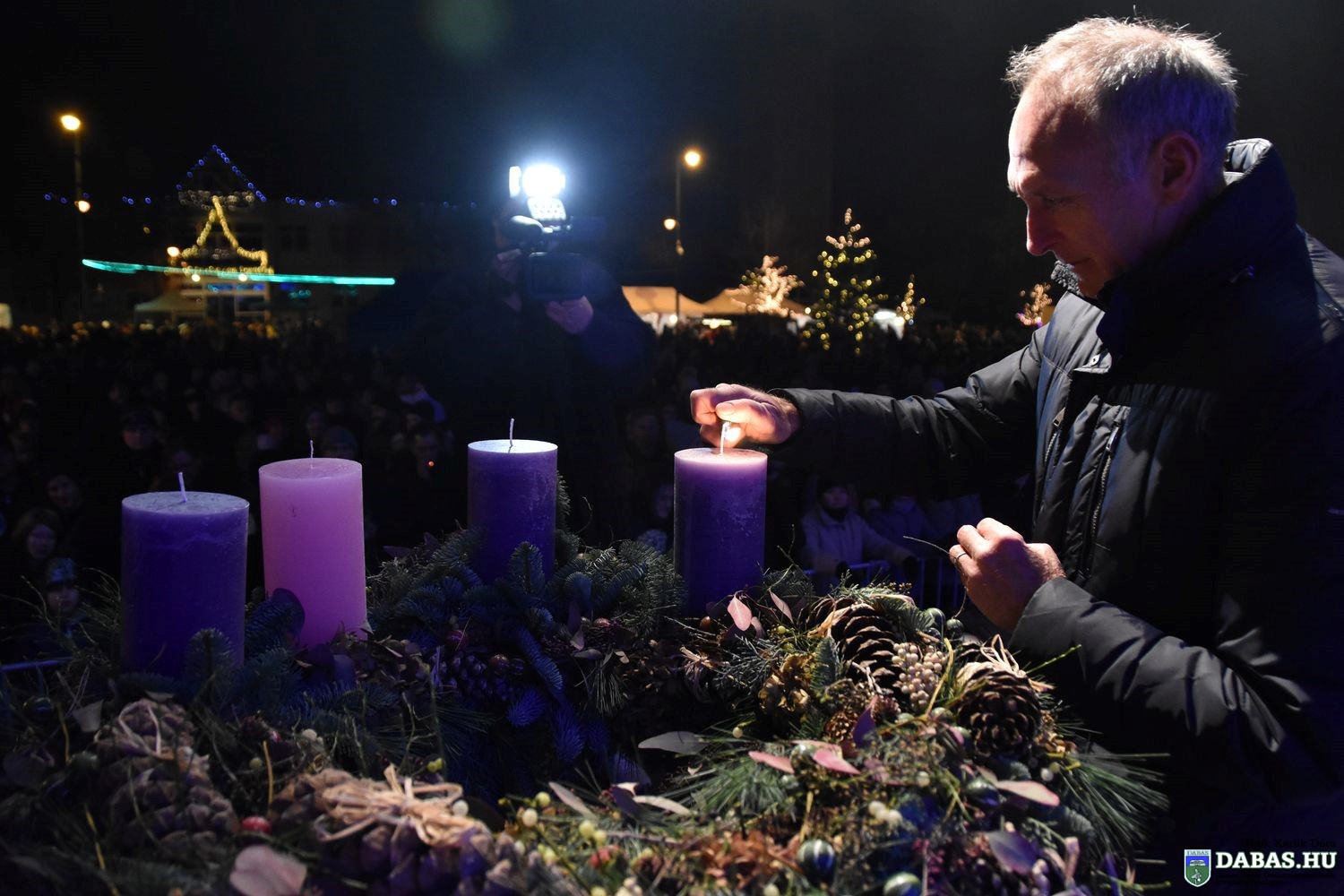 December 1-jén fellobbant az adventi koszorú első gyertyájának lángja és az ünnepi fények a város főterén.