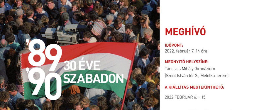 Tisztelettel meghívjuk Önt és Partnerét a kommunizmus bukására és a kelet-európai nemzetek 30 évvel ezelőtti antikommunista forradalmára emlékező „30 éve szabadon” című kiállítás megnyitójára.