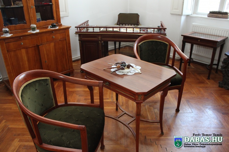 Dabas Város Díszpolgára, Eji néni családja féltve őrzött használati tárgyait, emlékeit hagyományozta a városra. A több nyelven beszélő, Oxfordban végzett Halász Mihály egyik kedvenc időtöltése a vadászat volt, ezért számos trófea, állatbőr gazdagítja a kiállítást. Ezek mellett számos régi bútor, családi kép és festmény, valamint különlegességként egy díszmagyar látható a szobában.
