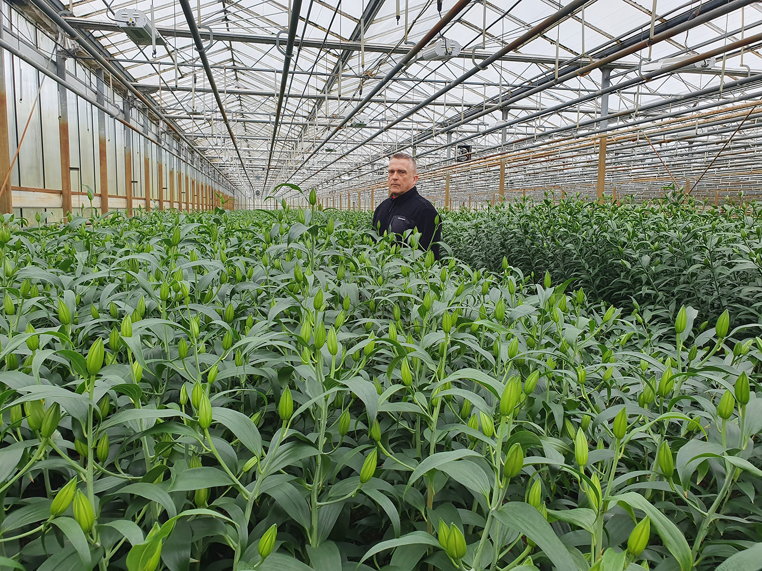 „Minden héten Hollandiából érkező megfelelő hőkezeléssel ellátott friss hagymákat talajlazítóval előkészített ágyásokba ültetjük.  Beöntözzük tiszta vízzel, majd a növény igényének megfelelően 10-12 naponta tápoldatozunk. Amikor leterem a növény, ismét talajrotálás következi, és friss hagymát ültetünk. Egy hagymából egy virág fejlődik, a maradványt pedig összezúzzuk. A későbbiekben fontos feladat a hálóemelés, a kitámasztás. Nyáron 70-80 napra, télen 90-100 napra szedjük a virágot.