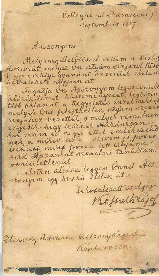 - 1838. október 21. Kossuth levele anyjához családi ügyekről, pere állásáról.