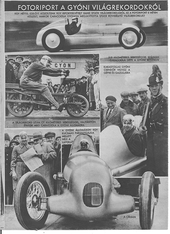 Siró György: Világrekordok Gyónon. Háromszáztizenhét kilométeres sebességet ért el Caracciola. Ujság 1934. október 30; p. 7.