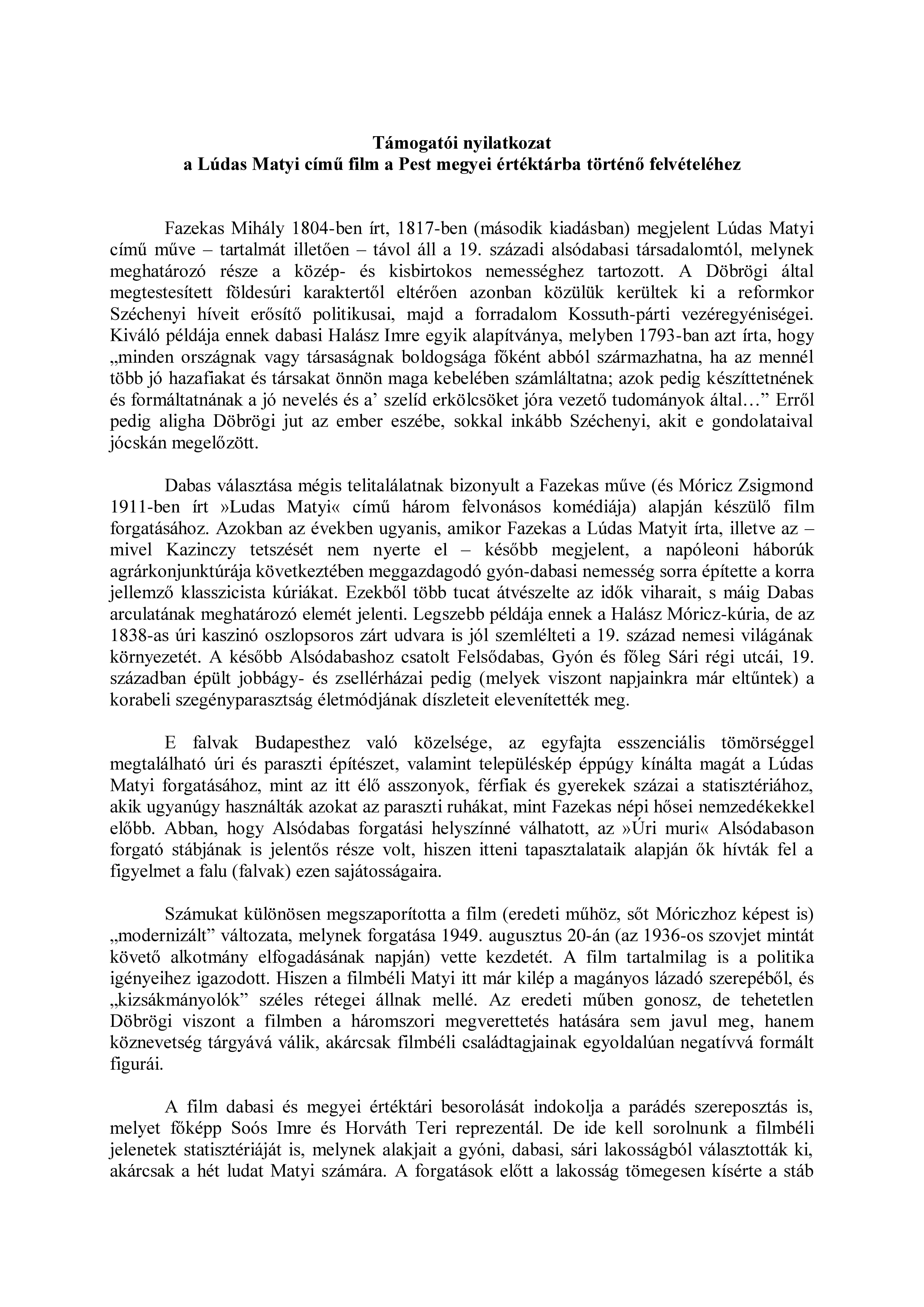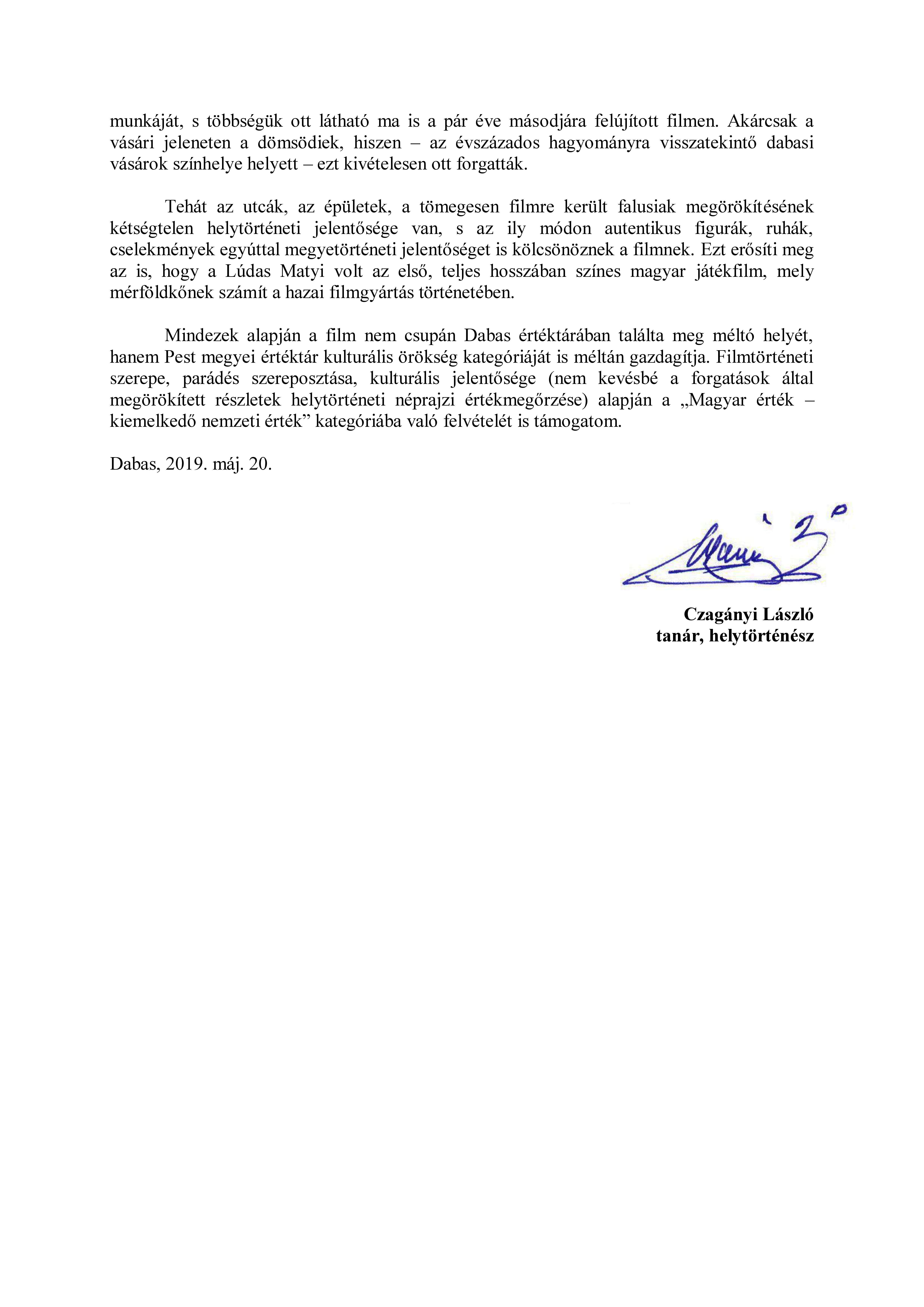 | Megyei értéktárba továbbítva: 2019.06.04. Támogató nyilatkozat: oldal1, oldal2 |