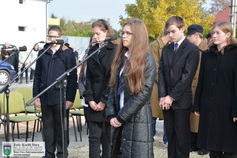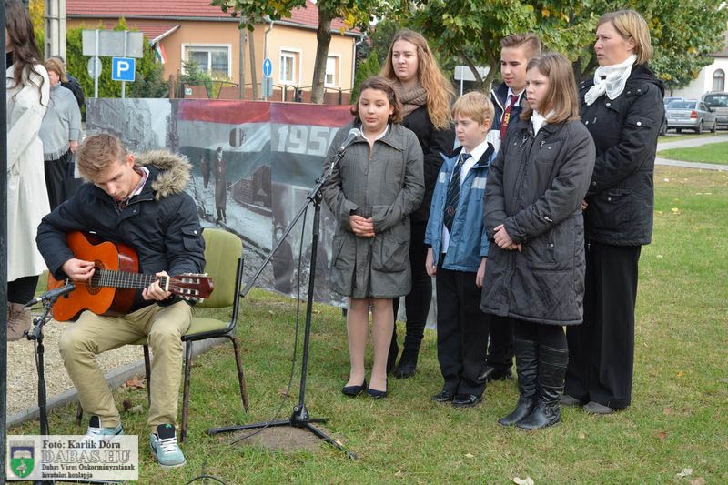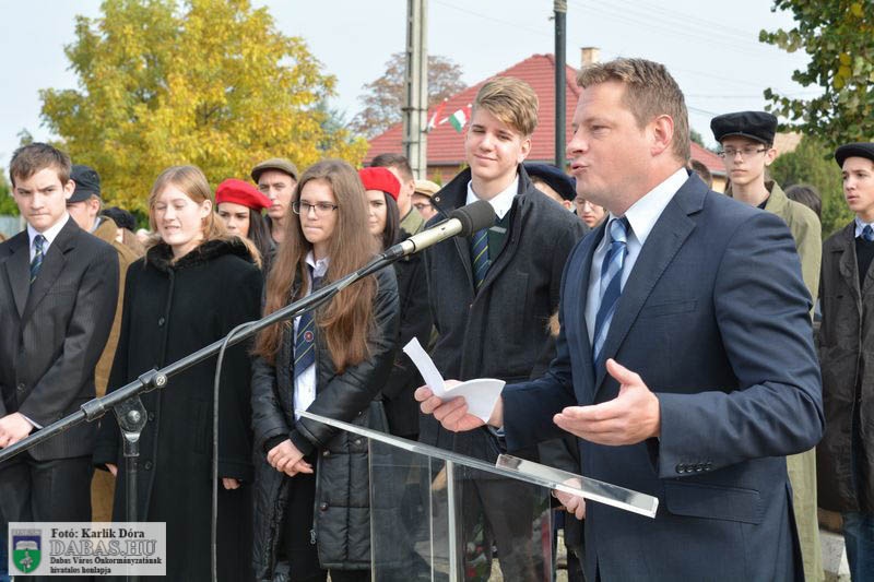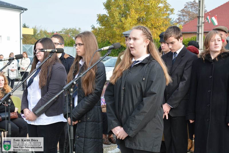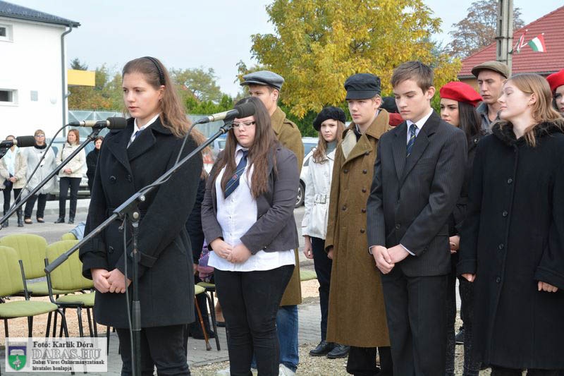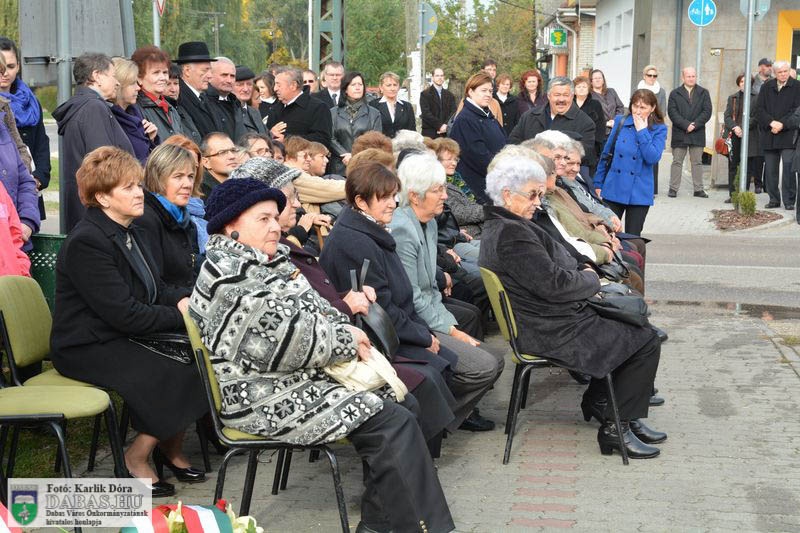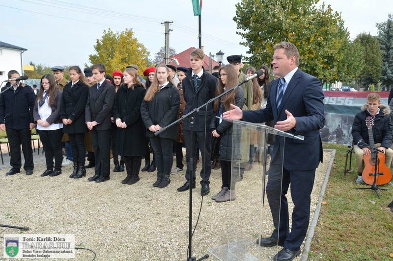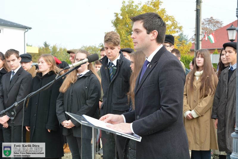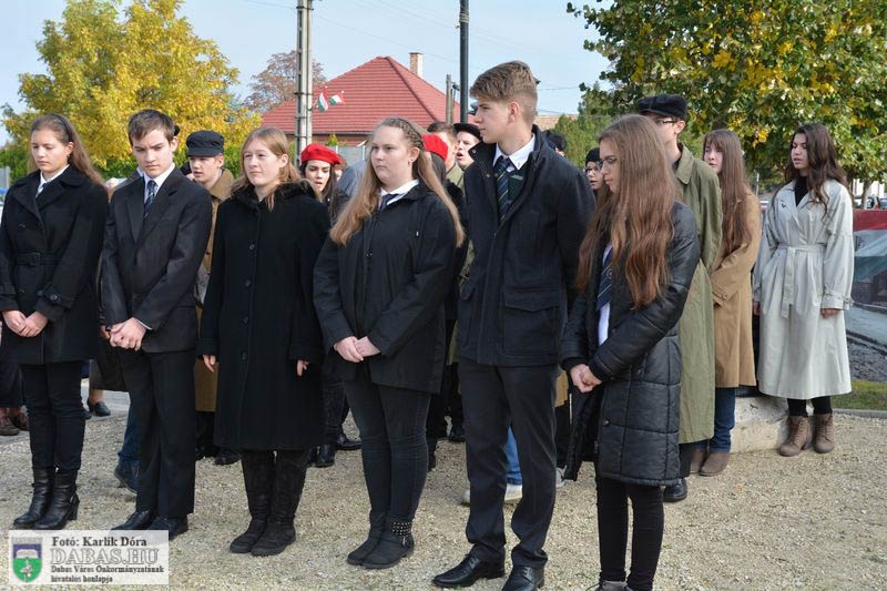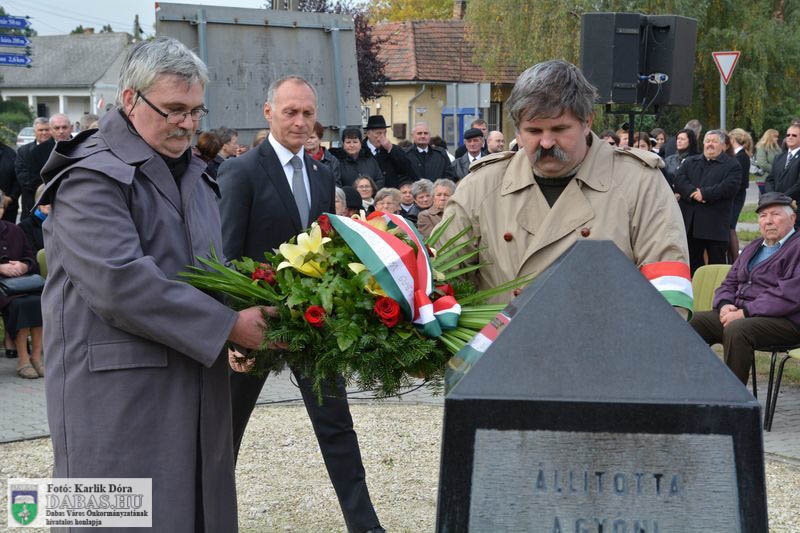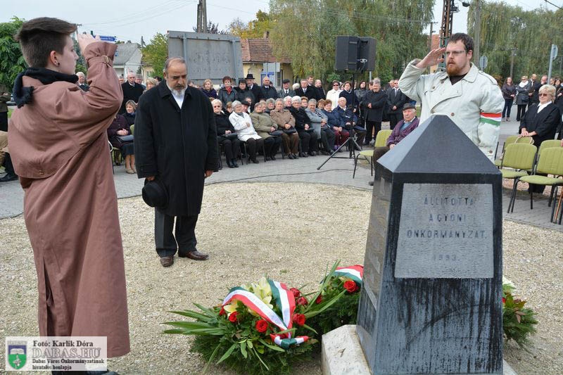 Dabas Város Önkormányzata október 23-án emlékezett az 1956-os forradalom és szabadságharc eseményeire a gyóni városrészközpontban, az 56-osok obeliszkjénél.