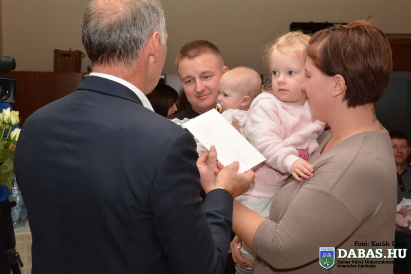 Dabas Város Önkormányzata november 7-én rendezte meg az újszülöttek köszöntését a Szent István úti Új Bóbita Óvodában. Ez alkalommal a 2015. első félévében született csecsemőket és szüleiket köszöntötték ajándékok, virágok átadásával és egy kis vendéglátással, délután pedig faültetésre került sor a sári Csati-parton, az Újszülöttek Ligetében.