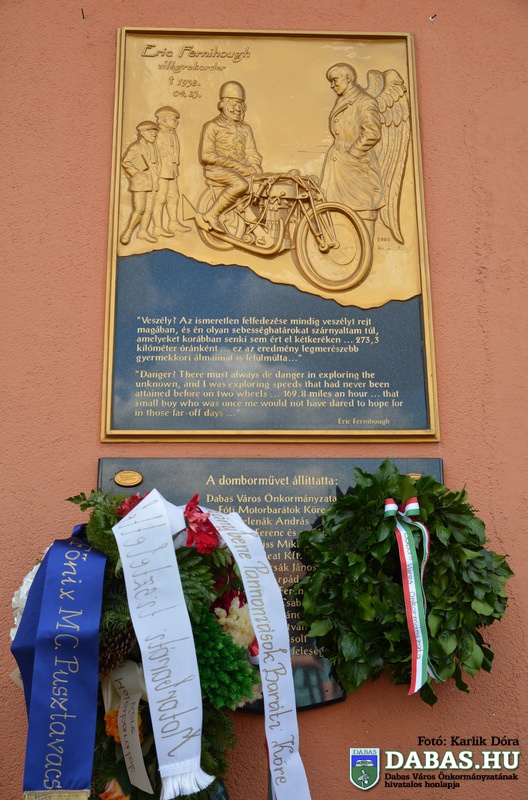 Dabas város Önkormányzata, a dabasi és a kistérségi motorosok, valamint a Fóti Motorbarátok Köre április 25-én idén is megrendezte Eric Fernihough angol motorversenyző emlékére és tiszteletére a motoros emlékkörrel egybekötött koszorúzását.