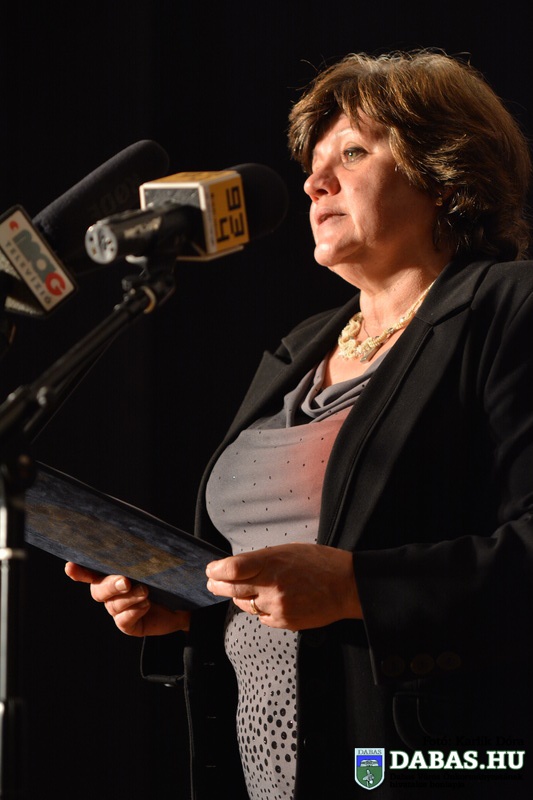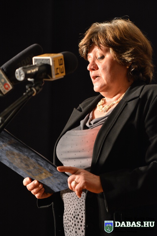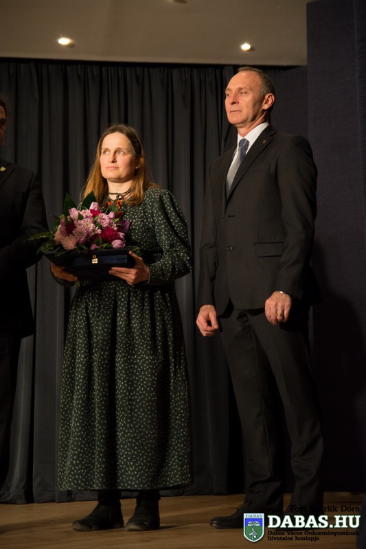 A rendezvény folytatásában Kőszegi Zoltán polgármester és Révész Károly, az Emberi Erőforrások Bizottság elnöke átadta a Dabas Kultúrájáért Karacsné Takács Éva-díjat, amelyben idén Solymosi Borbála népművész, nemezkészítő és népiének tanár részesült.