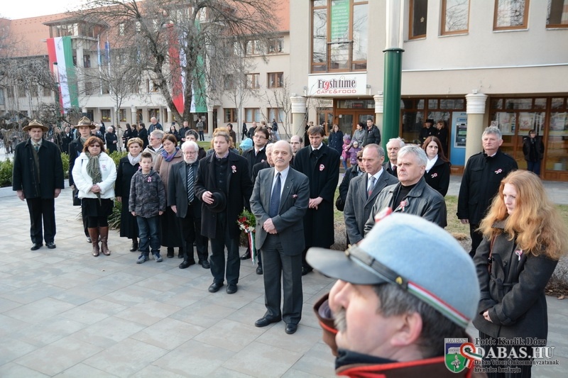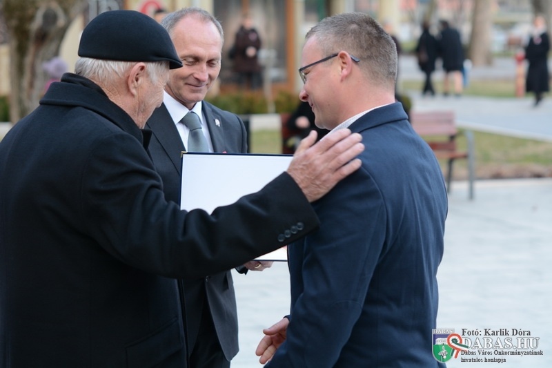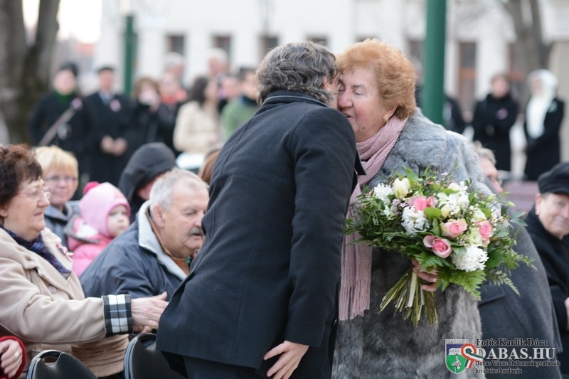 A központi ünnepség helyszíne a hagyományoknak megfelelően a Szent István tér volt, ahol mintegy 300 fő jelenlétében zajlottak a megemlékezés momentumai. A polgármesteri köszöntőt követően Popovics Béla kárpátaljai történész tartott ünnepi beszédet, majd sor került a Dabas Város Környezetvédelméért Télessy István-díj és a Dabas Város Díszpolgára kitüntető cím átadására. A környezetvédelmi díjat Sikari Orbán kertépítő mester vehette át, míg idei díszpolgárunk a mindenki által szeretett és elismert nyugalmazott gyermekorvos, dr. Farka Annamária lett. Az ünnepség koszorúzással zárult.