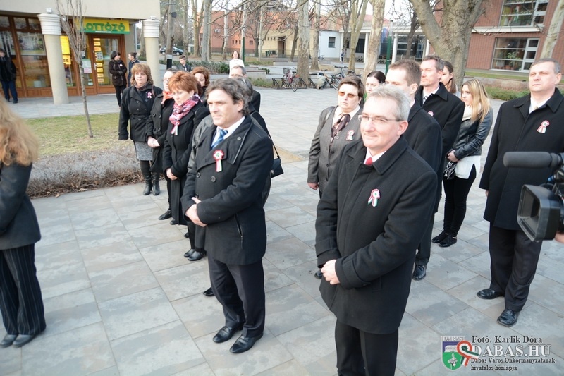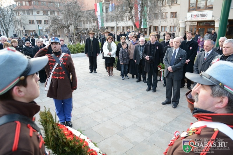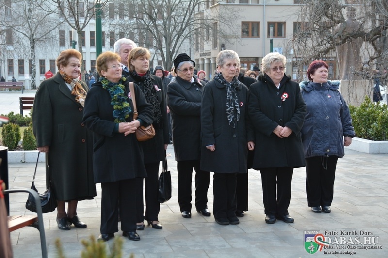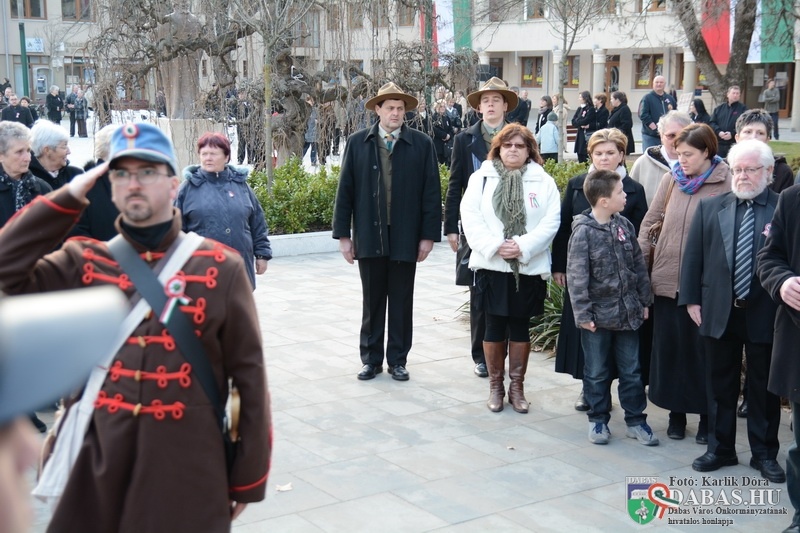 Március 15-én, vasárnap délután 14.00 órától az 1848-49-es forradalom és szabadságharc kitörésére emlékezett a város közössége. A rendezvény első helyszíne a Kossuth Ház Galéria és Kerekes László Alkotóház volt, ahol az egybegyűltek megtekinthették a dabasi óvodások rajzkiállítását. A rendezvény a Kossuth-ház homlokzatán elhelyezett emléktáblánál folytatódott, ahol a város polgármestere és Tapodi Katalin intézményvezető helyezett el koszorút.
