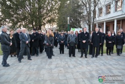 Az ünnepség következő helyszíne a Ravasz László úti református templom kertje volt, ahol dr. Kókai Nagy Viktor lelkész fogadta a vonulókat, majd a közönség átvonult a Kossuth Lajos Általános Iskola elé, ahol plakett-avatásra és koszorúzásra került sor.