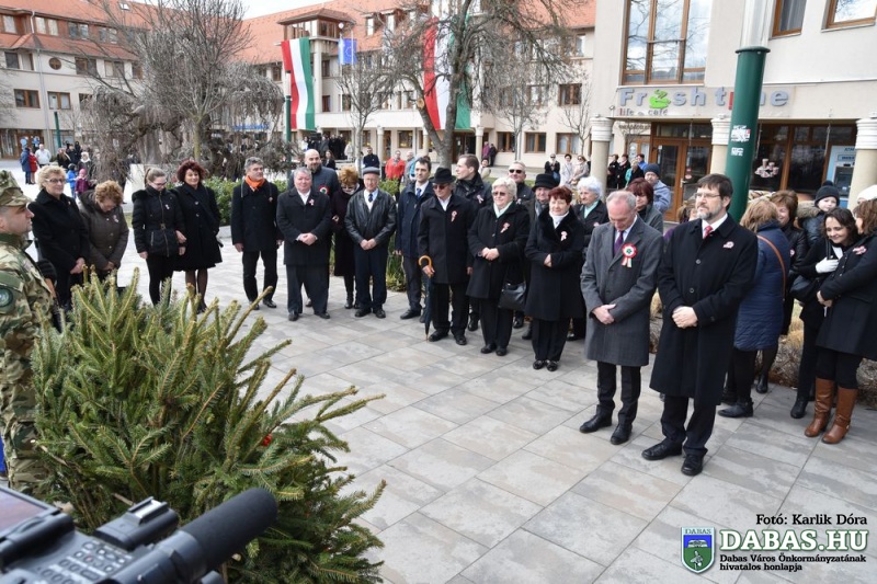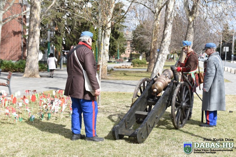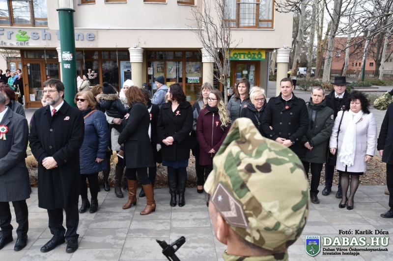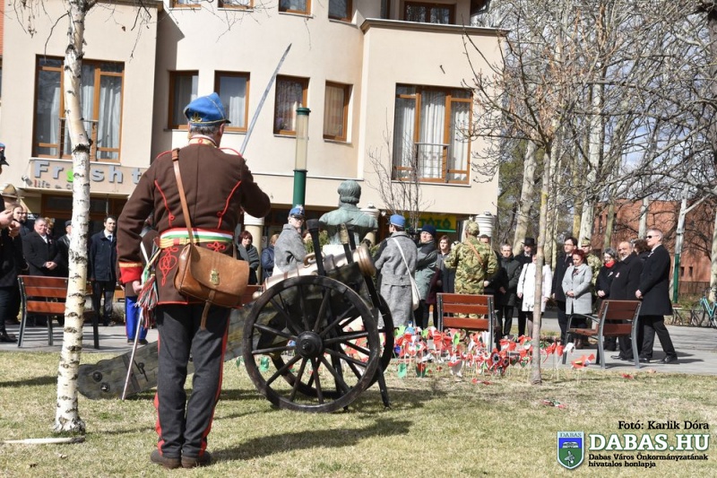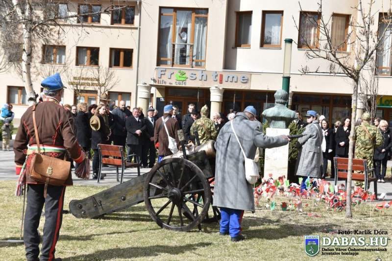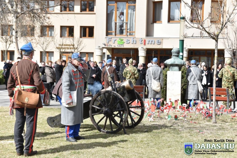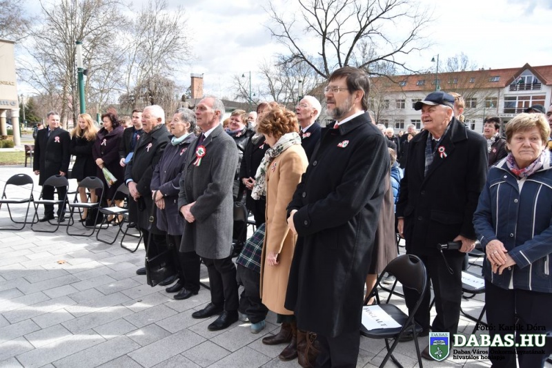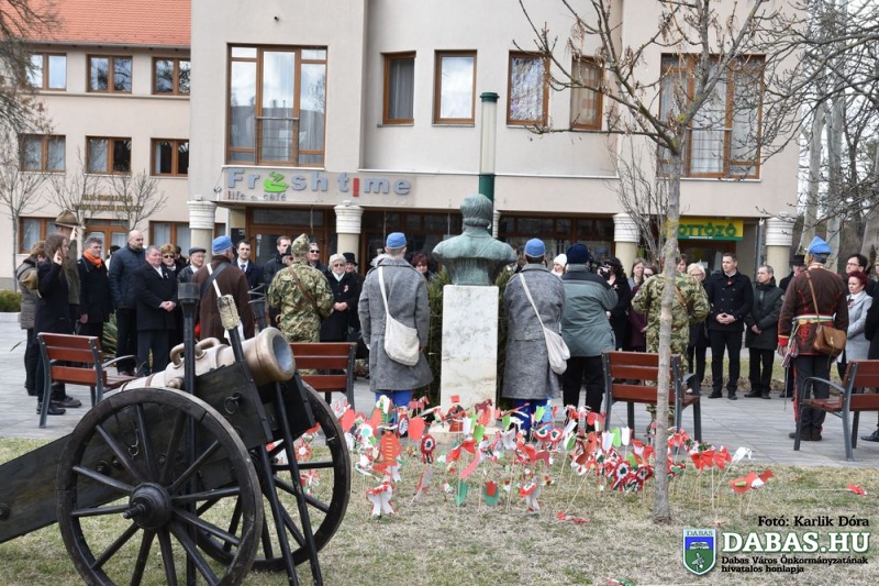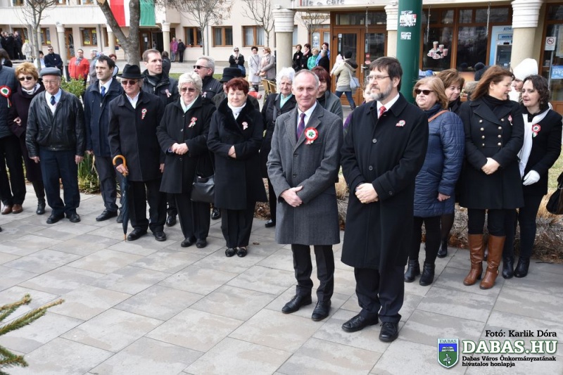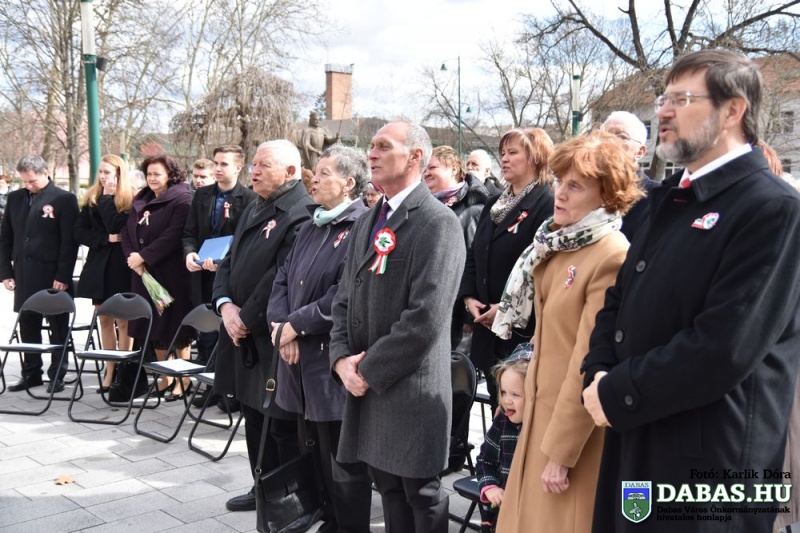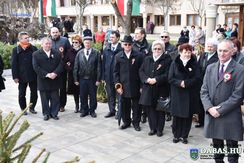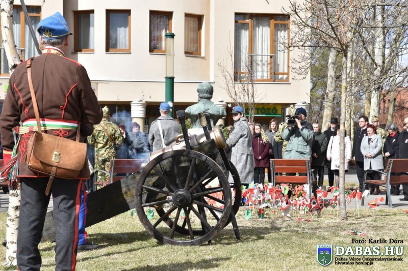 Március 15-én a harminc évvel ezelőtt kialakult hagyományos útvonal állomásait végig járva ünnepeltük meg nemzeti ünnepünket. Az eseménysorozat a Kossuth Ház Galéria és Kerekes László Alkotóházban kezdődött az óvodás rajzkiállítás megnyitójával és a Kossuth László emléktábla koszorúzásával. A református templomkertben  Szilágyi János lelkész köszöntőjét hallgatták meg a jelenlévők, majd megtekintették a Kossuth-koszorút. A harmadik helyszínen Kossuth Lajos Általános Iskola előtti Kossuth-domborműnél rövid megemlékező műsort követően a résztvevők együtt átsétáltak a Szent István térre.  A központi ünnepségen Kovács Nóri a Motiva zenekar énekese és a dabasi Táncsics Mihály Gimnázium szavalói műsorát követően Dr. Zlinszky János mondott nagyívű ünnepi beszédet. Hagyományosan ezen a szép tavaszi ünnepen adja át önkormányzatunk a Dabas Környezetvédelméért Télessy István-díjat, amelyet idén a Dabasi Egyesített Óvodák Gyóni Tagóvodája munkaközössége vehetett át. Szintén ezen a napon adták át a Dabas Város Díszpolgára kitüntetést, amelyet Klemencz Györgyné vehetett át .