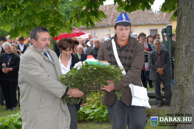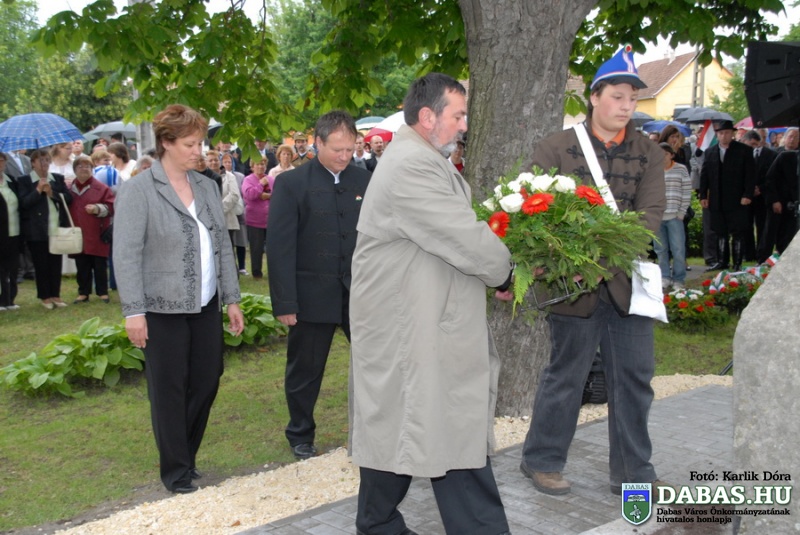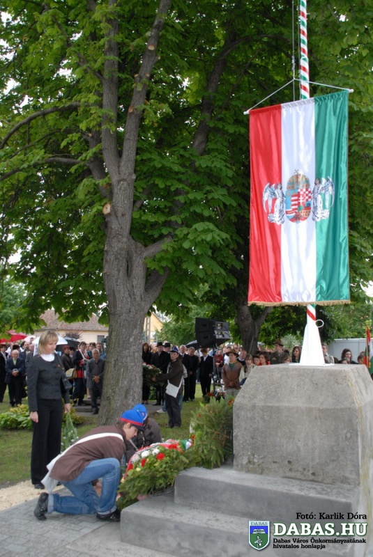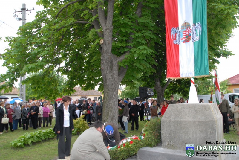 A TRIANONI DÖNTÉS 90. évfordulója alkalmából megrendezett rendezvénysorozat részeként 2010. június 4-én, pénteken 16.40 órakor került sor Dabas-Sári településrészen az Országzászló-avató ünnepségre. Az ünnepi rendezvényen Szandhofer János alpolgármester mondott köszöntő beszédet, majd dr. Zlinszky János, Dabas város díszpolgára mondta el ünnepi szónoklatát. Ezt követően került sor az országzászló felvonására, amit a történelmi egyházak képviselői szenteltek meg. A rendezvény zárásaként pedig a városi intézmények képviselői, illetve az ünnepi megemlékezés vendégei helyezték el koszorúikat a zászló talapzatánán.