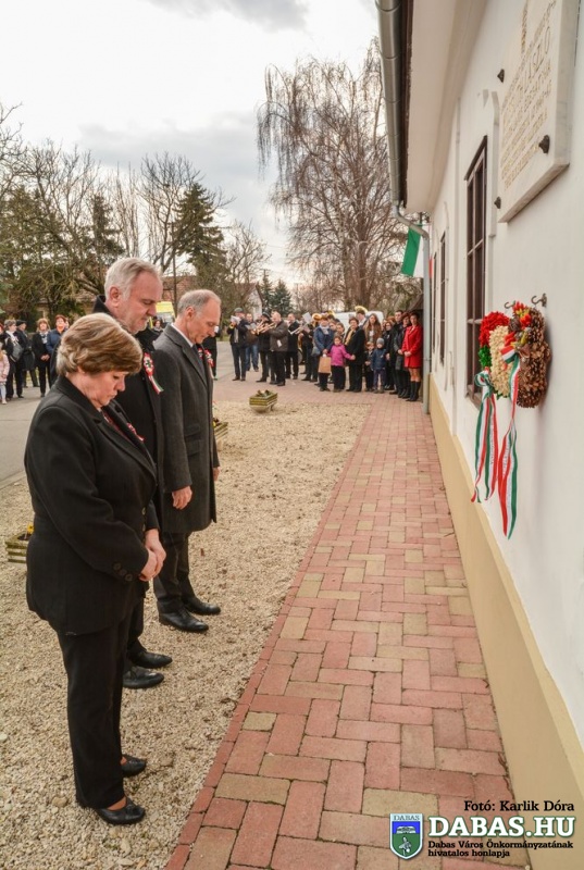 A rendezvény koszorúzással zárult, közel harminc intézmény, civilszervezet, egyesület kísérte a közös koszorút az épp 50 éve felavatott Kossuth-szobor talapzatához a Dabasi Kovács Sámuel Tüzércsapat felvezetésével.