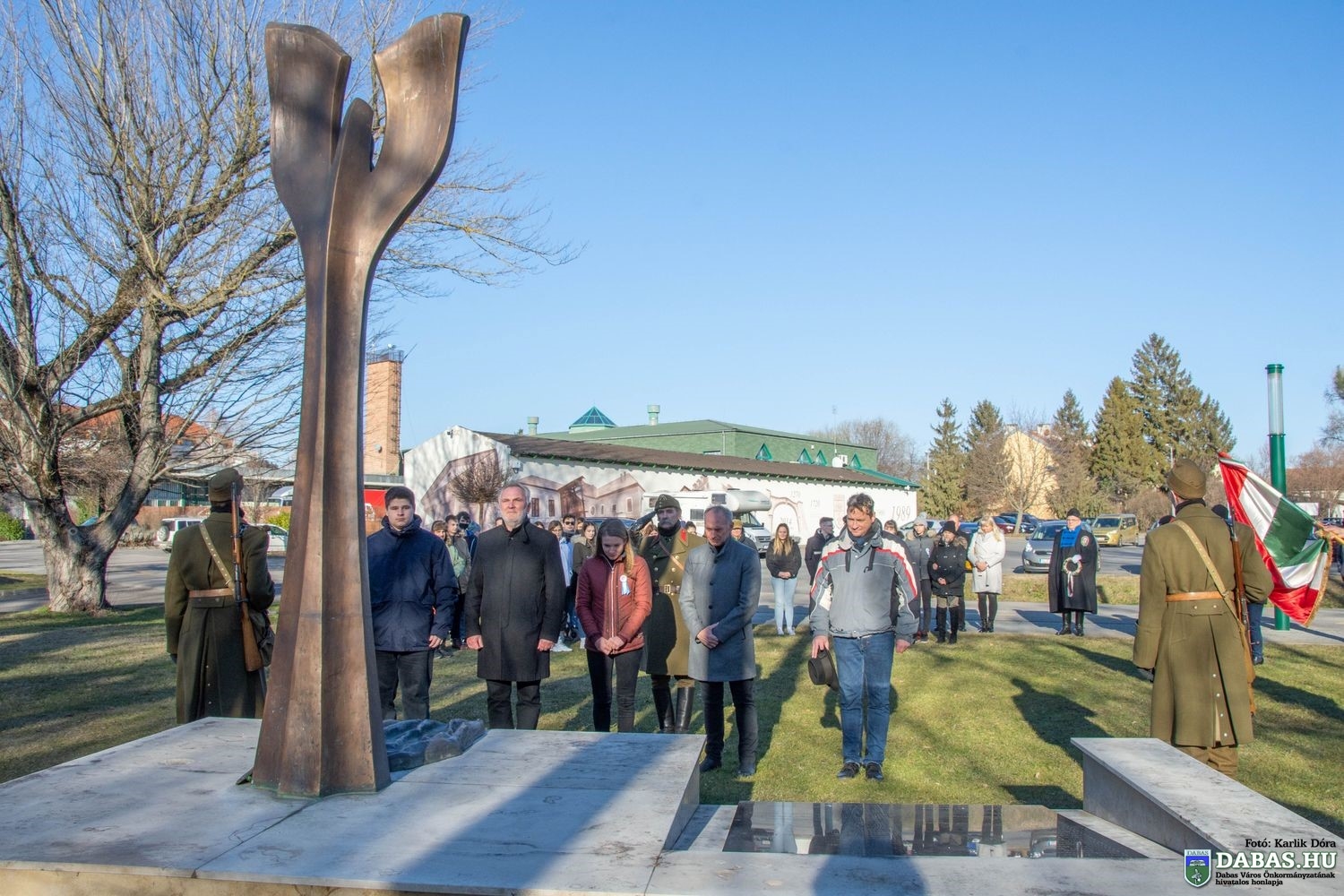 Ahogy minden évben idén is koszorúzással és főhajtással emlékeztünk meg a háború dabasi áldozatairól, az elesett hősökről. Kőszegi Zoltán polgármester, Pánczél Károly országgyűlési képviselő, Pásztor Gergely igazgató, a Táncsics Mihály Gimnázium végzős tanulói, emlékezők, valamint a dabasi hagyományőrző honvédtüzérek rótták le kegyeletüket a II. világháború áldozatai emlékművénél.