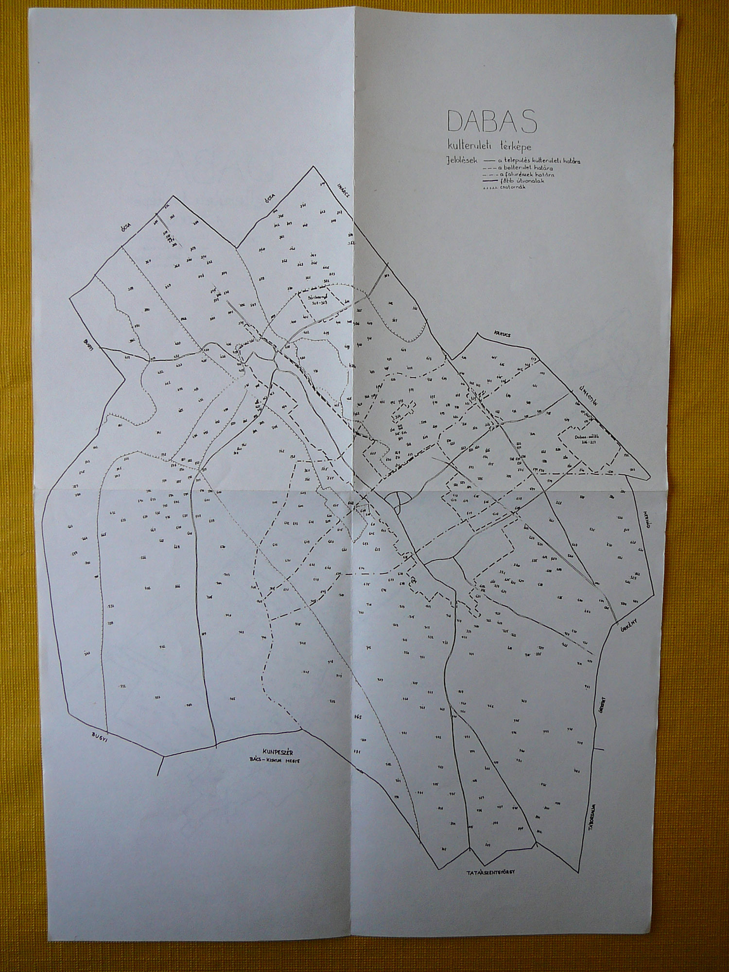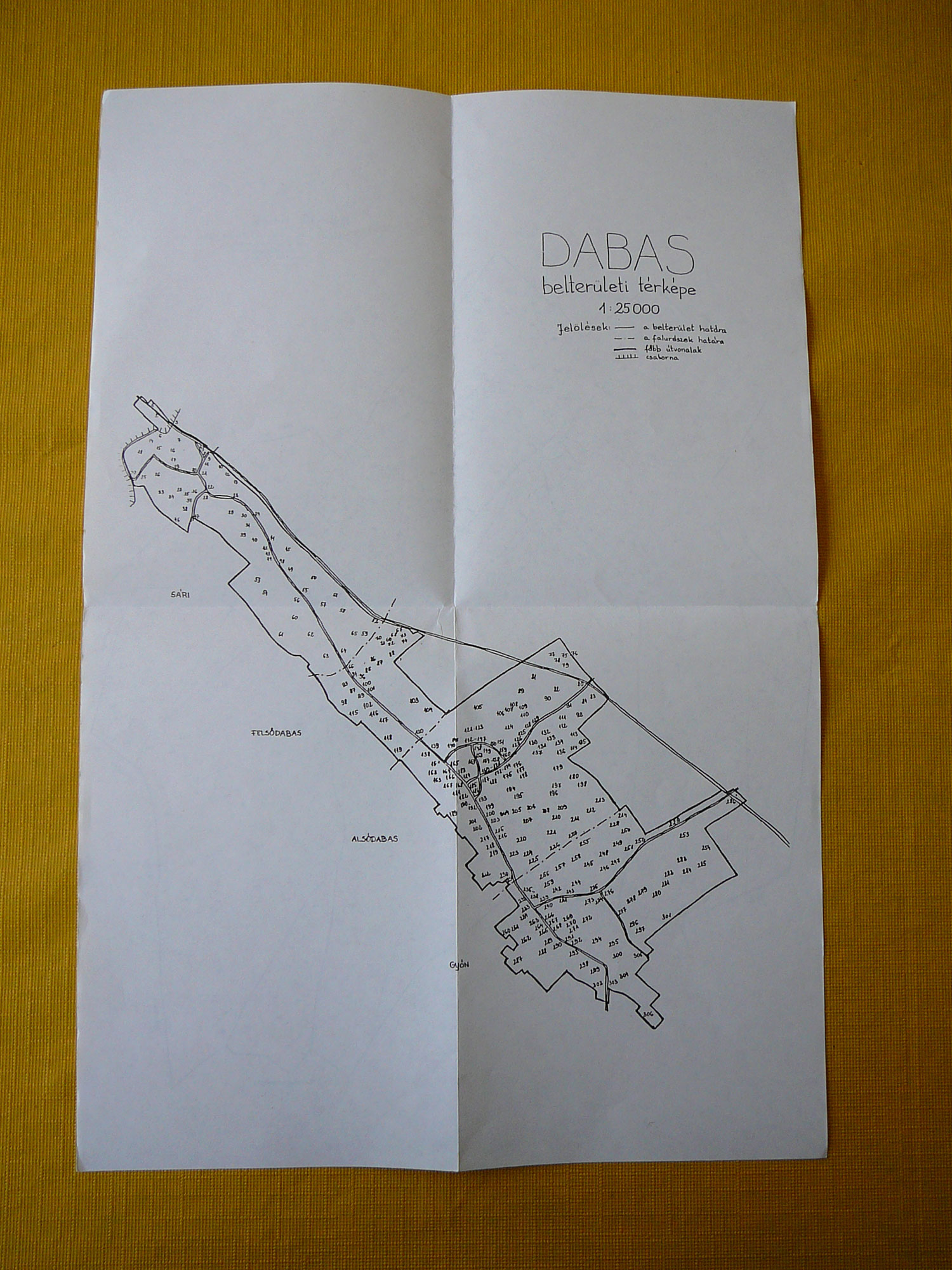 A 27X40 cm-es térképi melléklet két oldalán a település belterületi és külterületi ábrázolása található, a vonatkozó sorszámok elhelyezkedés szerinti feltüntetésével.