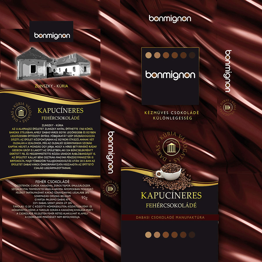 Kapucíneres fehércsokoládé: Csomagolásán a Zlinszky-kúriát és leírását jeleníti meg: „Az U alaprajzú épületet Zlinszky Antal építhette 1760 körül barokk stílusban, amely Dabas város egyik legöregebb és egyben legdíszesebb építészeti értéke. Főbejáratát szép díszbádogozás díszíti. Az épület központjában az egykori étkező, annak két oldalán a szalonok, míg az oldalsó szárnyakban szobák kaptak helyet. A mondás úgy járja, hogy a híres betyárverő Ráday Gedeon gróf is lakott az épületben, aki 554 bűncselekményt derített fel és megsemmisítette Rózsa Sándor rablóbandáját is. Az épületet Kállay Béni osztrák-magyar pénzügyminiszter is birtokolta, majd többszöri tulajdonosváltás után 2013-ban az épületet Dabas Város Önkormányzata visszaadta az építtető család leszármazottainak.”